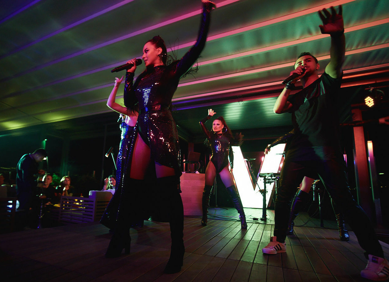 Перфоманс с музыкантами, шоу-балетом и вокалистами. Основной состав — 8 артистов. Количество артистов может варьироваться в зависимости от пожеланий заказчика. 5 разных шоу-программ по 40 минут.